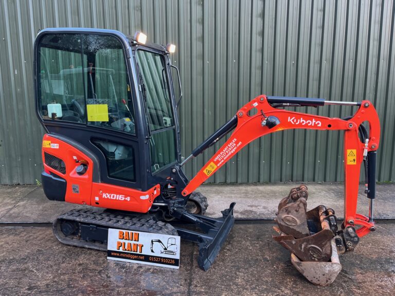 YEAR 2019. 2062 HOURS. FULL CAB, 3 BUCKETS, 12″, 24″ & GRADER. EXPANDING WIDTH UNDERCARRIAGE. NEW RUBBER TRACKS. 1615KG IN WEIGHT. 3 WORK LIGHTS. NEW TIPPING LINK PINS, NEW BOOM TO KINGPOST PIN AND BUSH’S. ARM SHIMMED. PRICE £11950 + VAT.